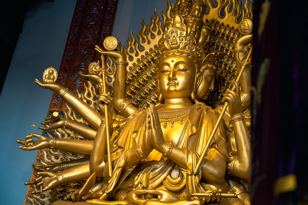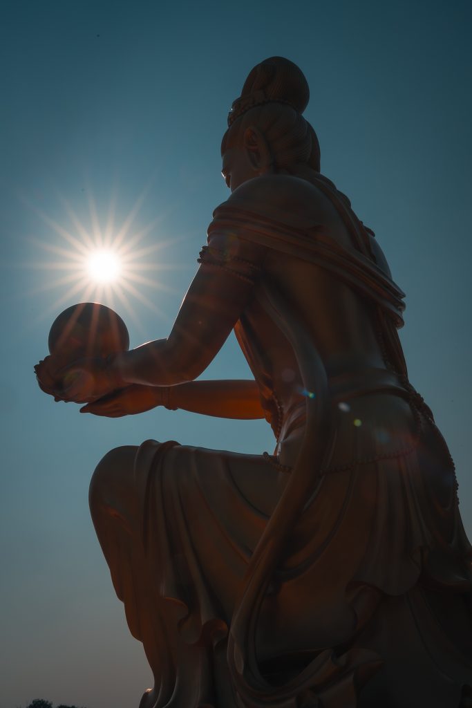 Guanyin (觀音 Guānyīn) az Avalokiteśvara néven ismert bodhiszattva kínai neve, az együttérzés fizikai megtestesítője, akit a hívők a bizonytalanság, a kétségbeesés és a félelem idején hívnak segítségül. A Guanyin a Guanshiyin rövidítése, ami azt jelenti, „Aki érzi a világ hangjait”.