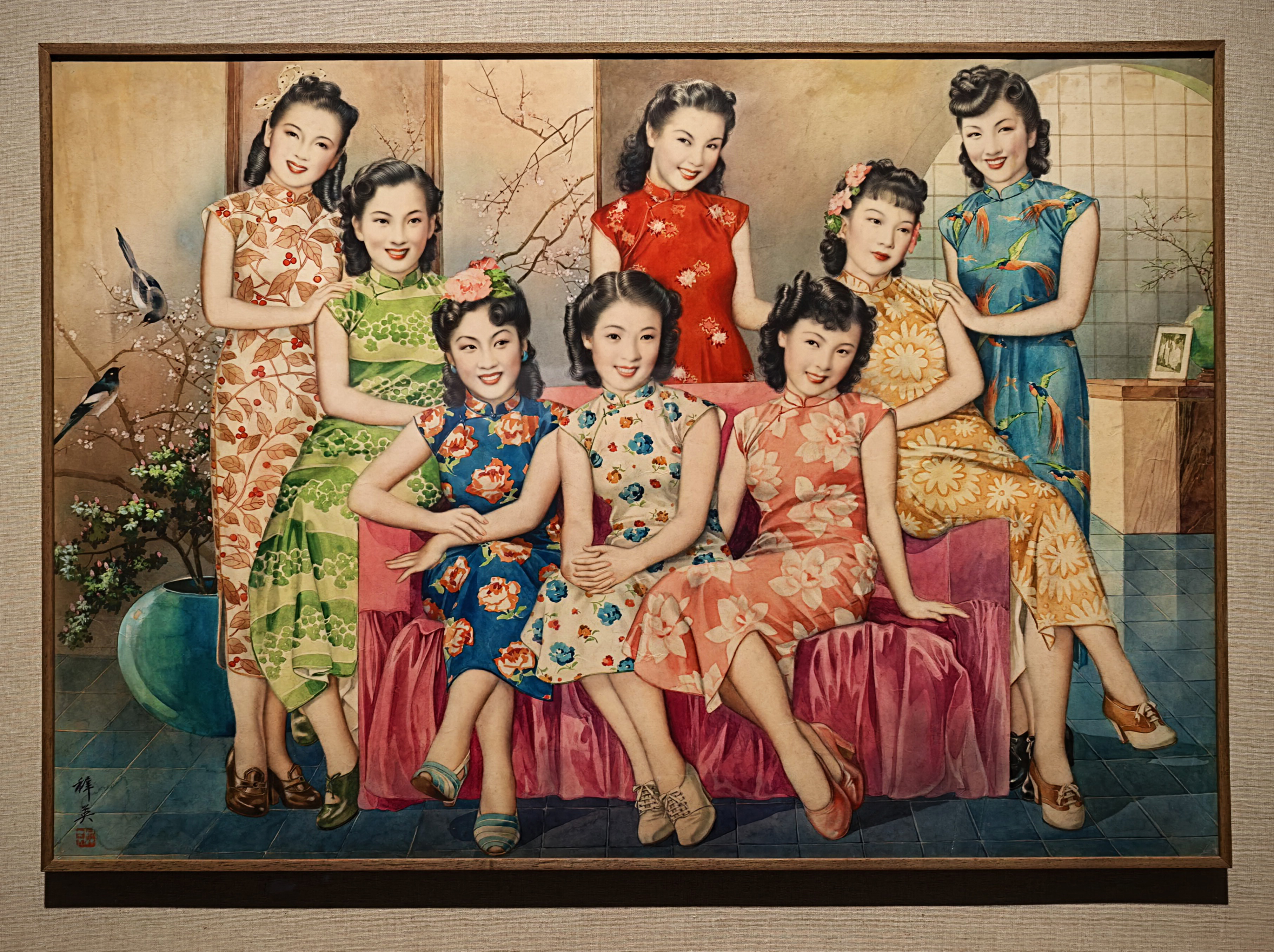 Qipaot viselő divatos nők Hang Zhiying képén, 1940-es évek.