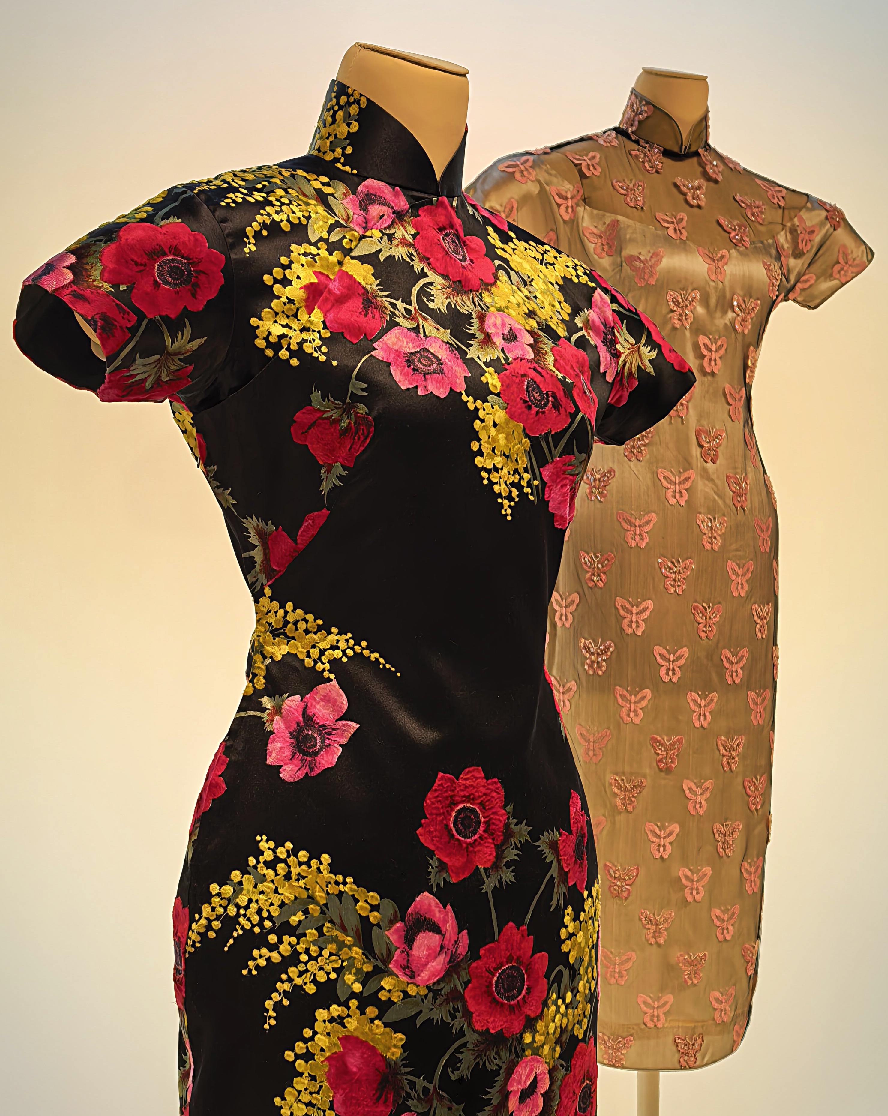 A qipao rövid történeti áttekintését a kiállítás alkalmából kiadott “Qipao – Glamour and Modernity Beyond Shanghai” könyv és Yu Ying kurátor cikke alapján írtam.