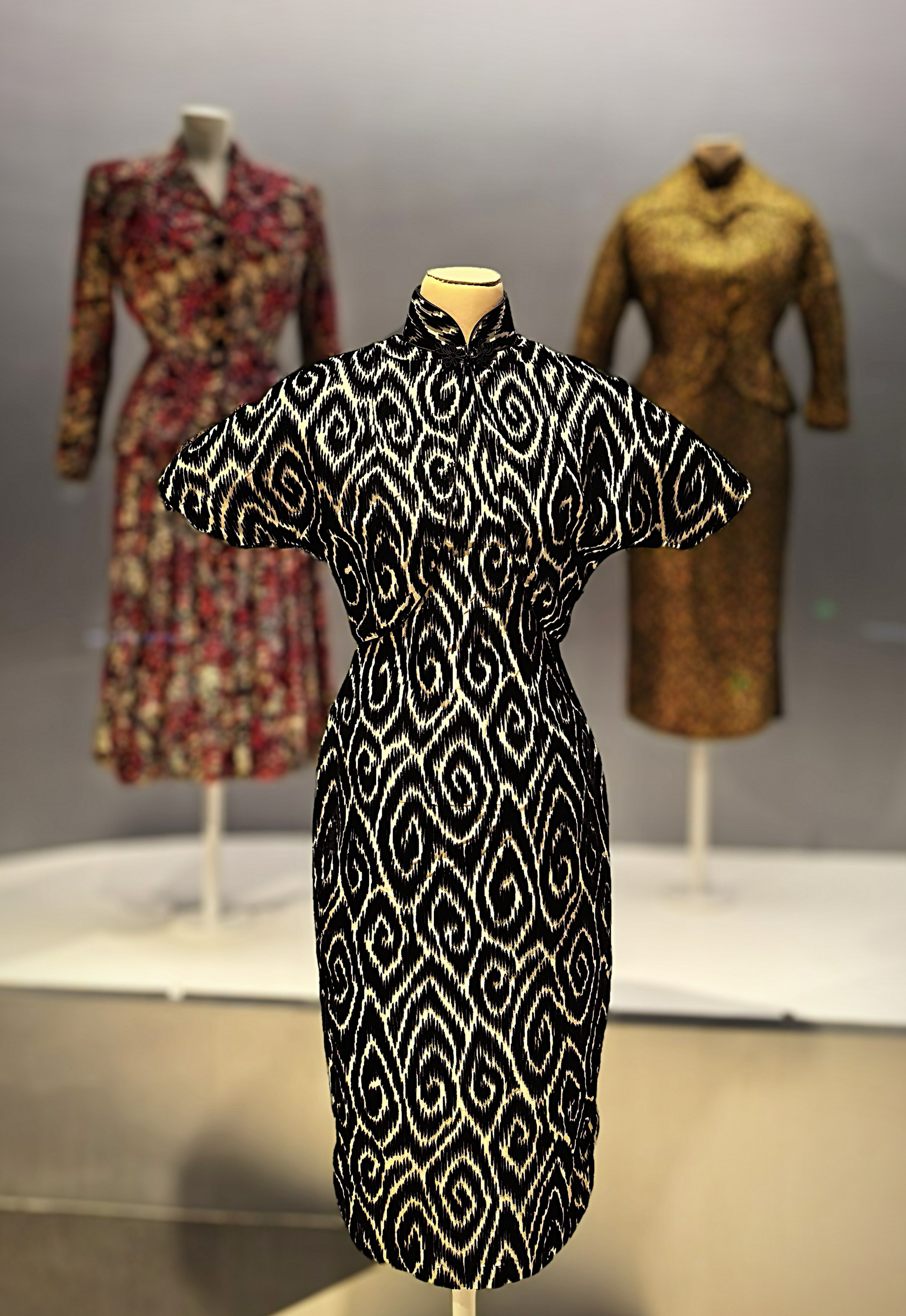 Jacquard bársony qipao örvény mintával, 1960-as évek.