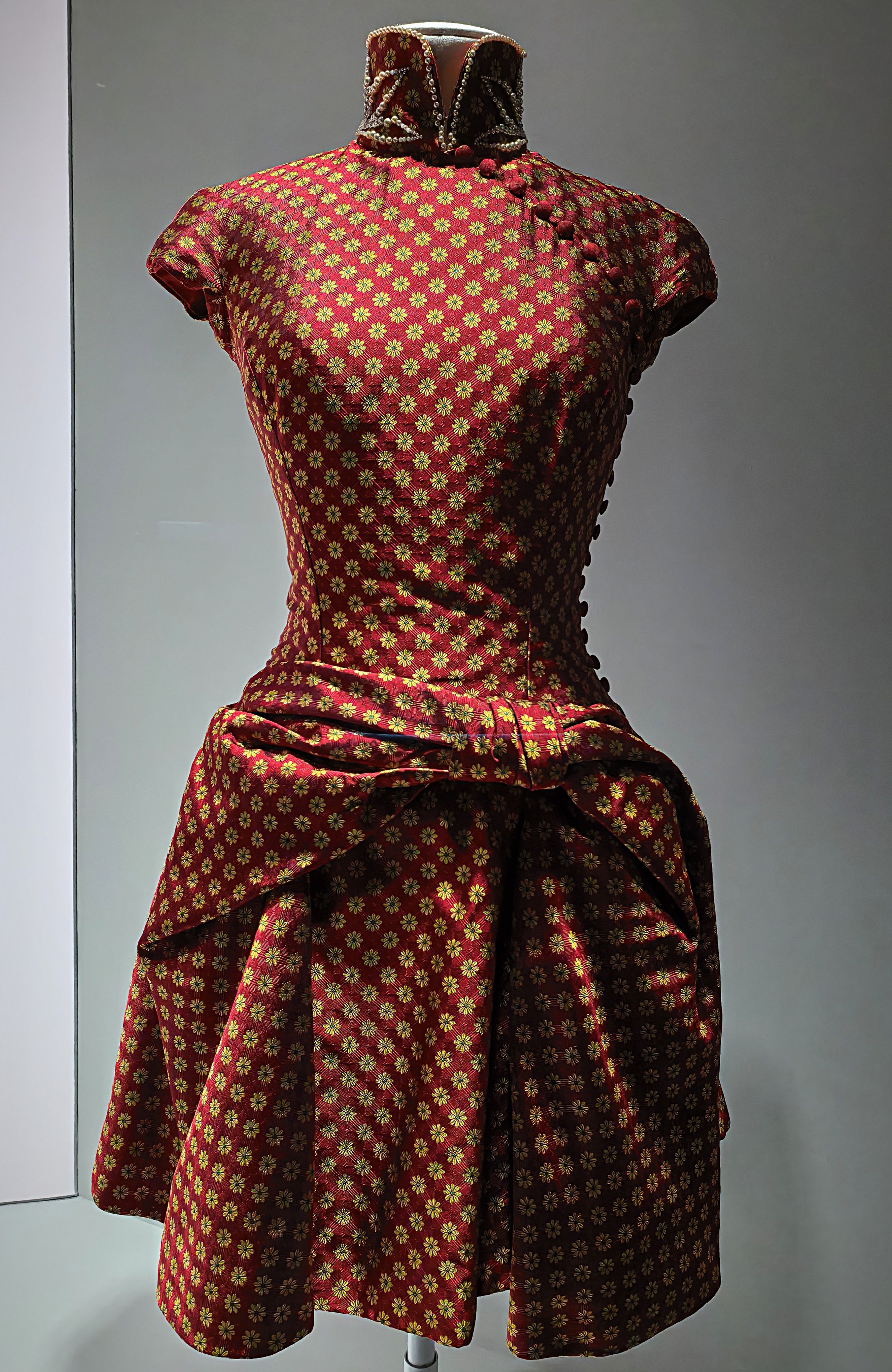 Lilás vörös jacquard szatén qipao az 1930-as évekből.