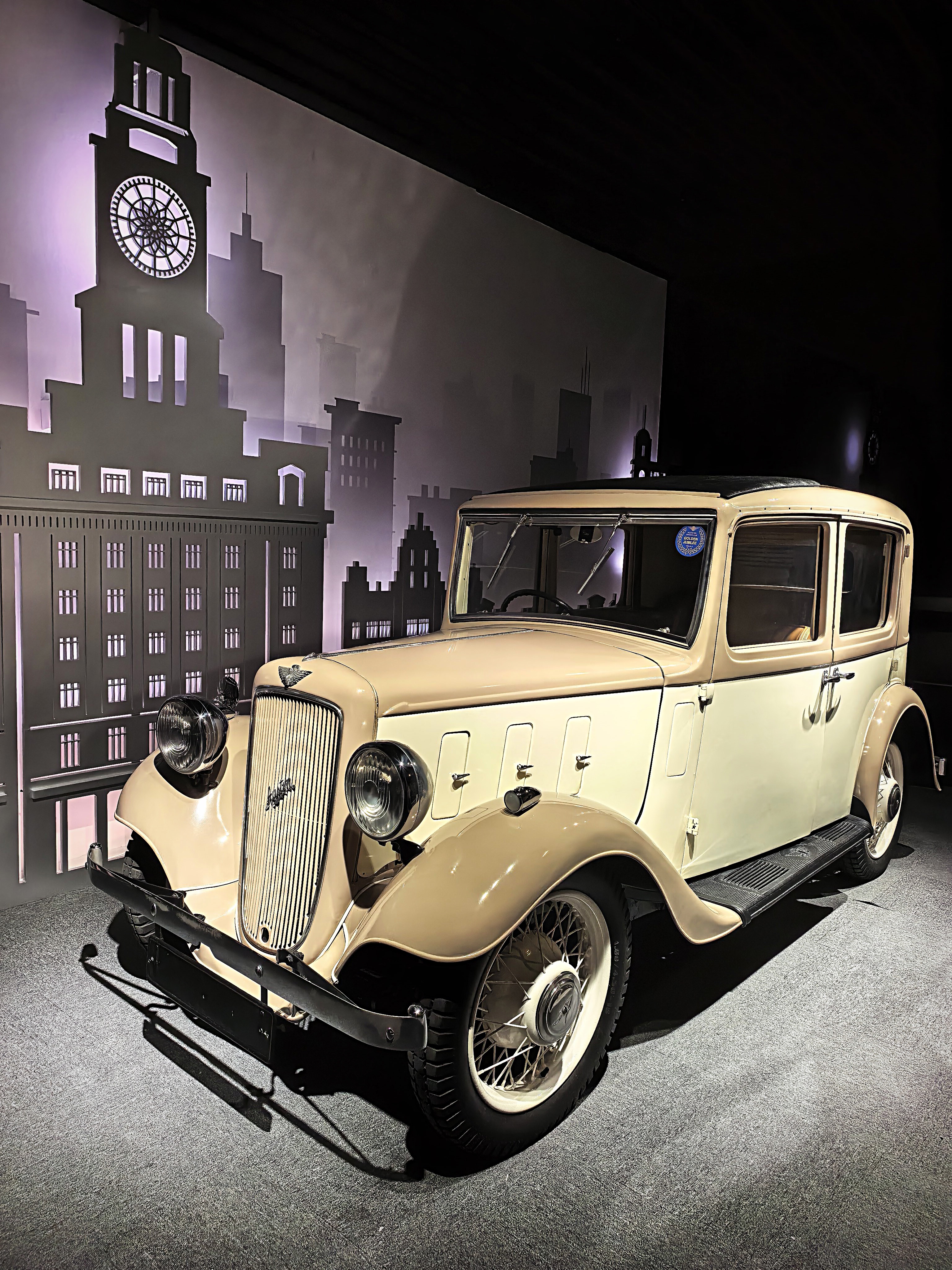 Krémszínű Austin 10 Saloon, mely visszarepíti a látogatót az 1930-as évek csillogó Sanghajának a világába.