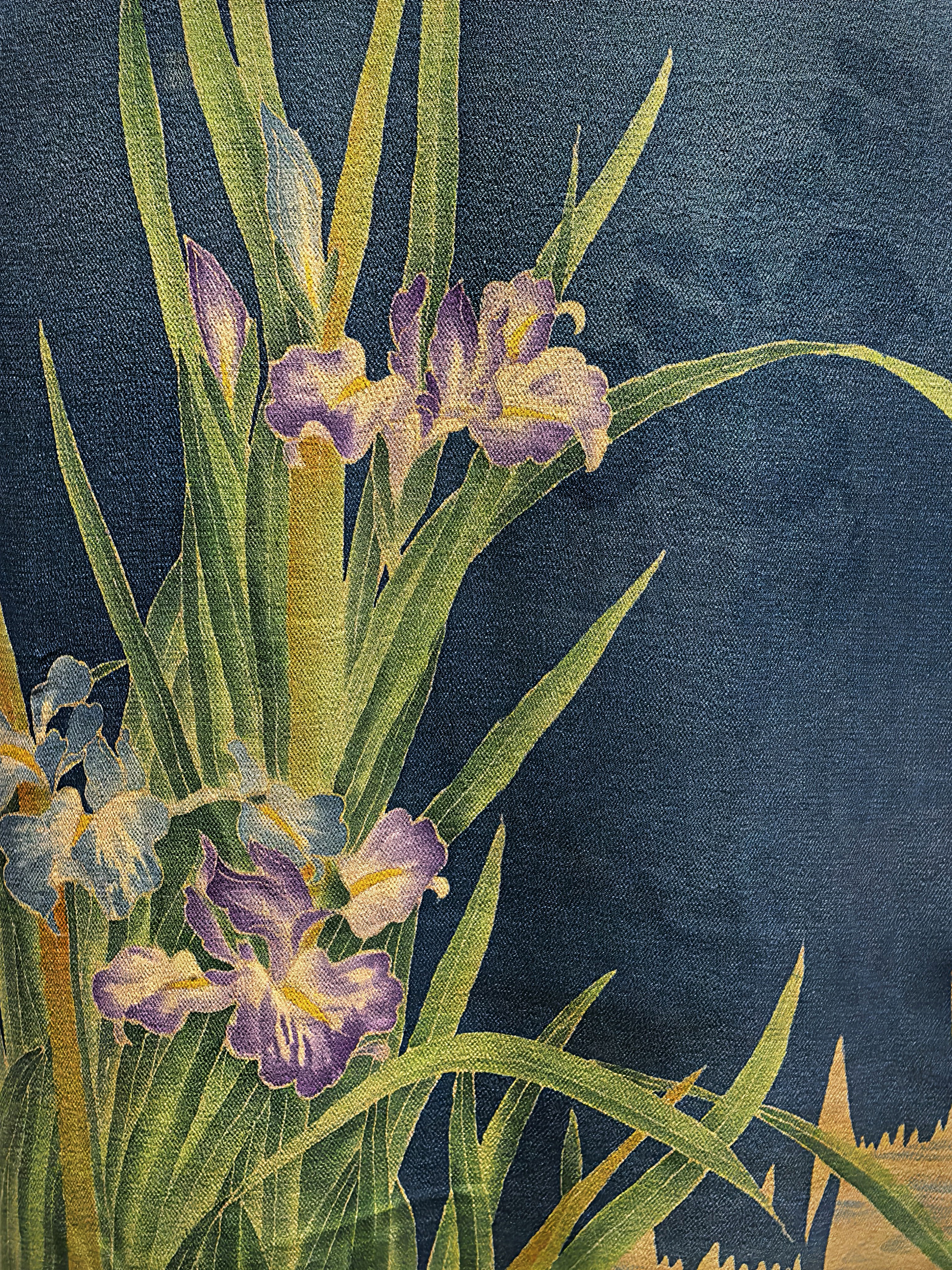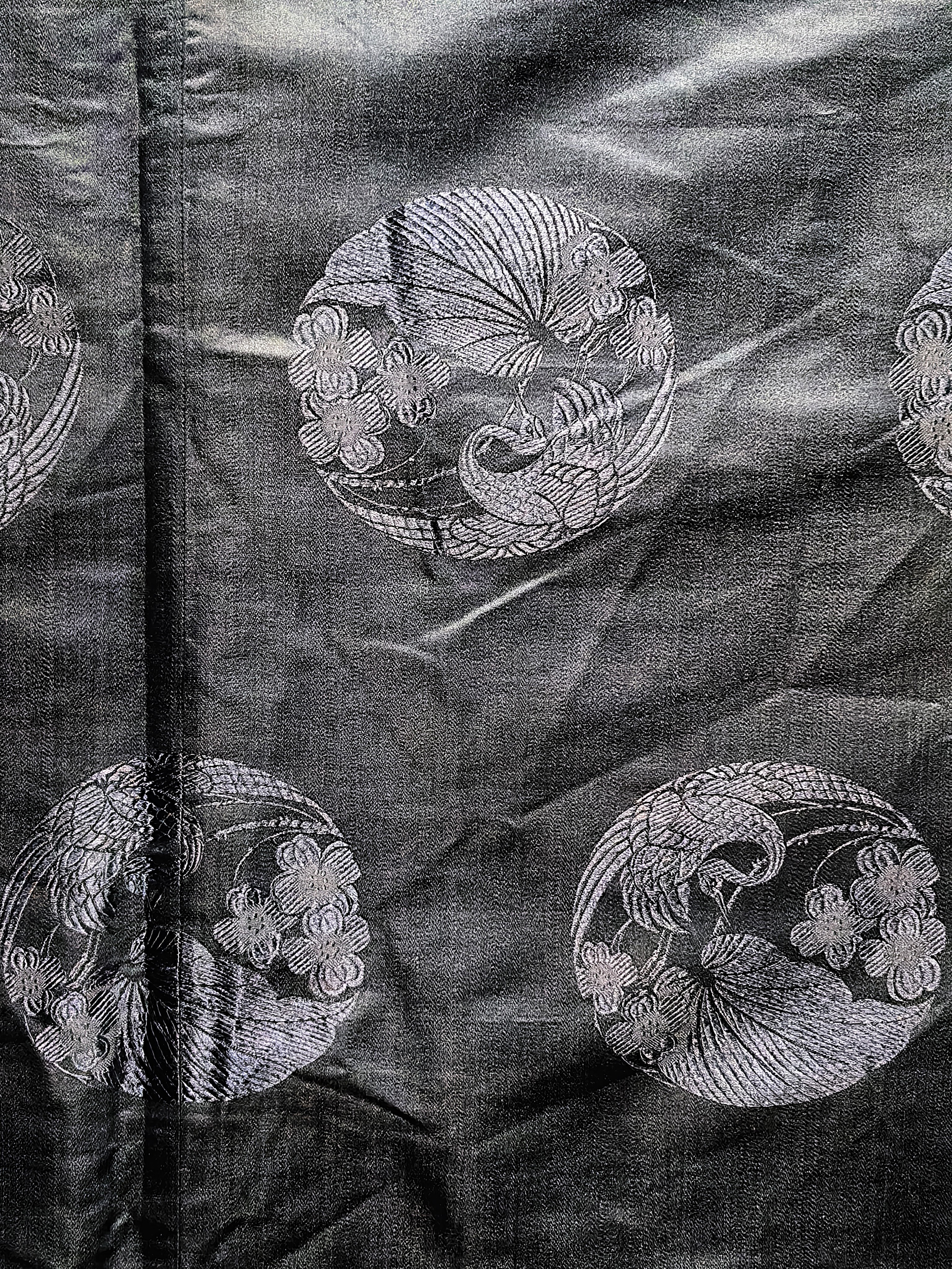 Kék damaszt szatén darumadár mintával, 1920-as évek eleje.