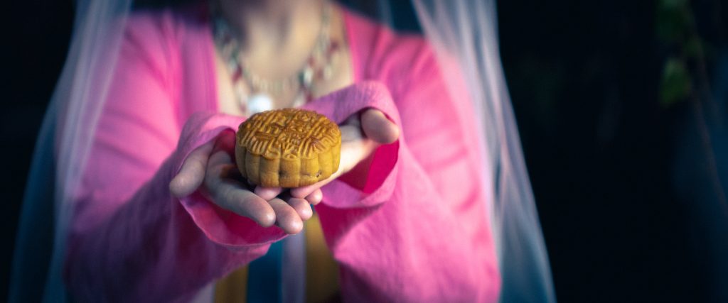 Valamikor réges régen élt Kínában egy íjász, Hou Yi. Abban az időben tíz Nap világította meg a Földet. A nagy forróság miatt kiszáradtak a folyók és a termőföldek, ínség és szenvedés várt az emberekre. Hou Yi, hogy megmentse az emberiséget, ellovagolt a Kunlun hegyhez és isteni íjával kilőtt kilenc Napot az égről, egyet pedig meghagyott, hogy az fényével táplálja az életet. A hőssé vált Hou Yiből király lett és feleségül vette a szépséges Chang’E-t. Egy nap összetalálkozott Xi Wangmuval, a Nyugati Paradicsom Anyakirálynőjével, aki megajándékozta őt a halhatatlanság elixírjével. Hou Yi annyira szerette feleségét, hogy nem akarta magára hagyni evilágon, így arra kérte, hogy rejtse el a csodaitalt. Egyszer aztán, amikor Hou Yi távol volt otthonról, a Pang Meng névre hallgató egyik udvaronca belopódzott és arra kényszerítette Chang’E-t, hogy adja oda neki a halhatatlanság elixírjét. Chang’E nem akarta, hogy Pang Meng istenné válva ártson az embereknek, viszont tudta, egyedül nem győzheti le, így megitta a szérumot. Teste egyre könnyebbé vált, egyre feljebb és feljebb, egészen a Holdig repült. Halhatatlanná vált és ő lett a Hold Palotát őrző istennő. Soha többé nem térhetett vissza szeretett férjéhez. HouYi hazatérve olyan szomorú volt Chang’E elvesztése miatt, hogy szépséges felesége kedvenc ételeit és italait készítette ki a szabadba egy kis asztalra, ezzel őrízve meg az emlékét. Aznap különösen kerek és fényes volt a Hold.
