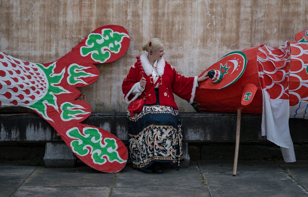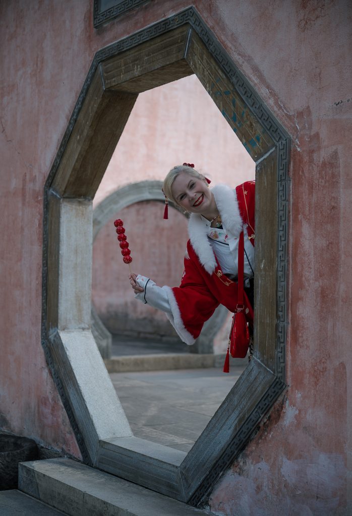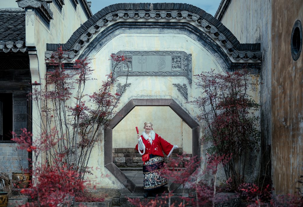 A februári nedves hideg átjárta testemet, én mégis magamra öltöttem téli hanfumat. Piros kabátkámra arannyal hímzett hosszú köpönyeget dobtam, nyakam köré fehér szőrmét csavartam. Pár órával azelőtt még forró teát szürcsöltem miközben lassan, precíz ecsetvonásokkal igyekeztem díszessé varázsolni a hallámpásomat. A helyiek meg is dicsértek, hogy ez a “laowai jobban fest mint a shifu”. Most pedig kezemben a saját halacskámmal büszkén lépkedtem a több mint 1200 éves falu, Xixinan macskaköves utcáin.