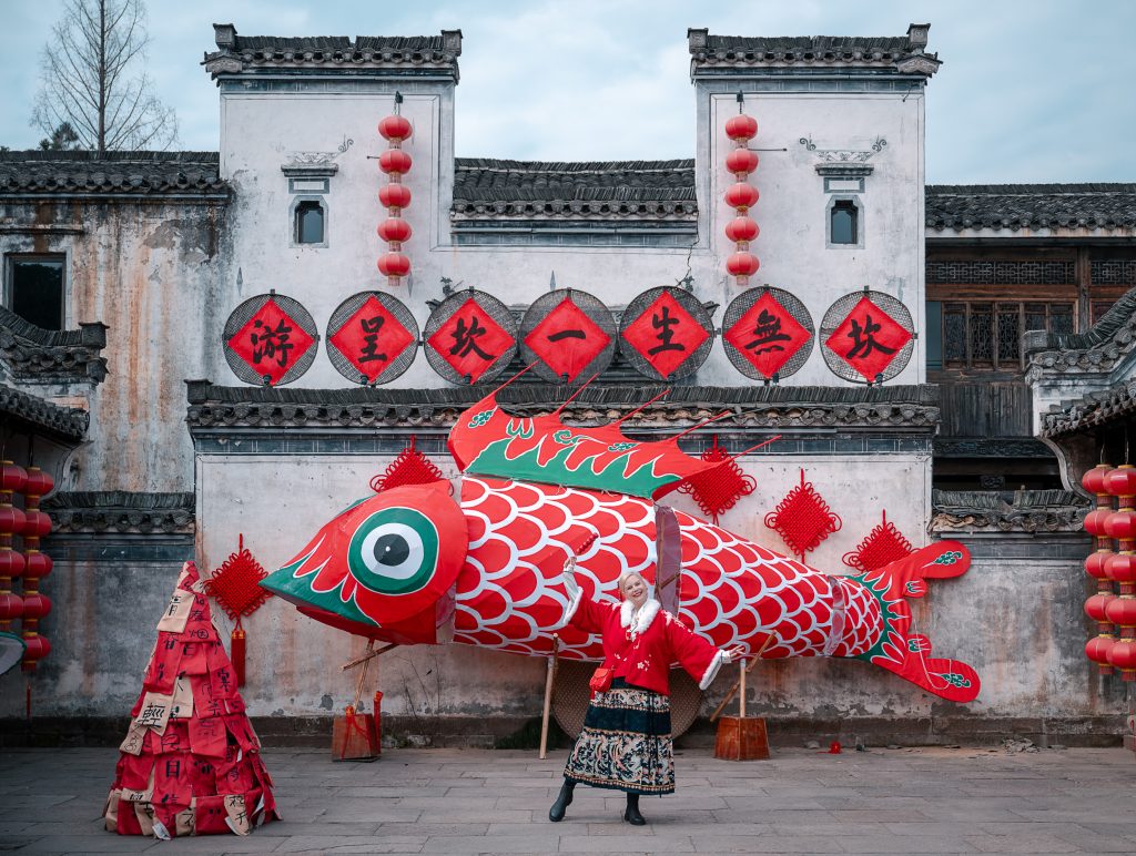 A kínai újév és az azt megelőző időszak az egyik kedvencem mióta Kínában élünk. Minden évben magával ragad az ünnepi hangulat. A piros díszek és a színes lampionok sokasága teljesen elvarázsol, és egy boldog eufórikus állapotba kerülök, ami hetekig tart. A mindig nyüzsgő Sanghaj ilyenkor egy ragyogó mesevilággá válik. Idén azonban még beljebb merészkedtünk az újévi meseerdő fái között, és Sanghajt elhagyva egészen Huizhou-ig (徽州 Huīzhōu) mentünk, hogy megleljük a jó szerencsét hozó óriás halak világát.